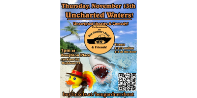 Uncharted Waters is an evening of totally unscripted entertainment! The duo Ben Gardner's Boat will be taking the stage to weave tales out of thin air and audience suggestions! November 13th at Boughton Place in Highland, NY. Just a stones throw from fine dining and night life in New Paltz! Doors open at 6:30. Show starts at 7pm shark! I mean 7pm sharp!
